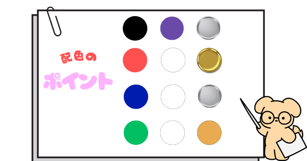 まずは推しカラー+白+ゴールド(またはシルバー)などで試してみましょう。